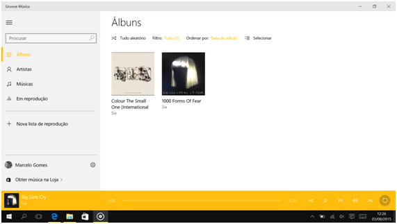O Groove é o novo reprodutor de música do Windows. Suporta vários formatos de ficheiros musicais e é ainda possível comprar músicas usando a Loja, uma vez que estão interligados.