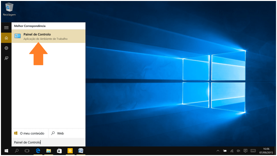 1. O primeiro passo é abrir o menu Iniciar, procurar por Painel de Controlo e clicar ou tocar no primeiro resultado.
