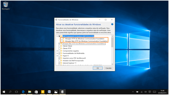 Ela irá ficar marcada com um quadrado porque existem subcomponentes do .NET Framework que não foram ativados. Caso os queiram ativar cliquem ou toquem no + ao lado da caixa e marquem as caixas dos dois itens.