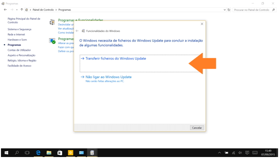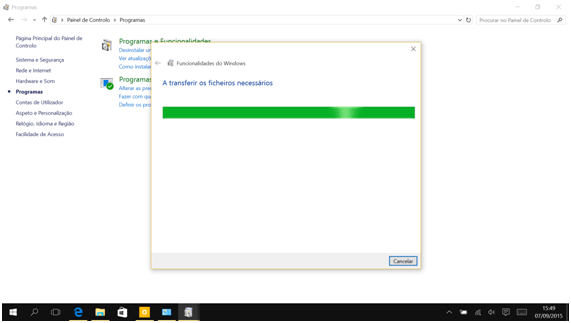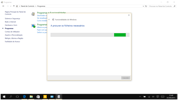 3. E a seguir em Ativar ou desativar funcionalidades do Windows.