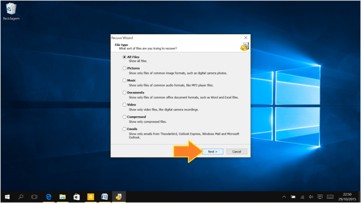 2. Vamos abrir o Recuva e clicar ou tocar em Next.