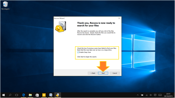O processo de busca pelo ficheiro eliminado começou e pode demorar muito tempo em alguns casos!