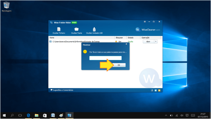 10. Ser-nos-á pedida a palavra passe do ficheiro ou pasta. Basta introduzi-la e clicar ou tocar em OK!