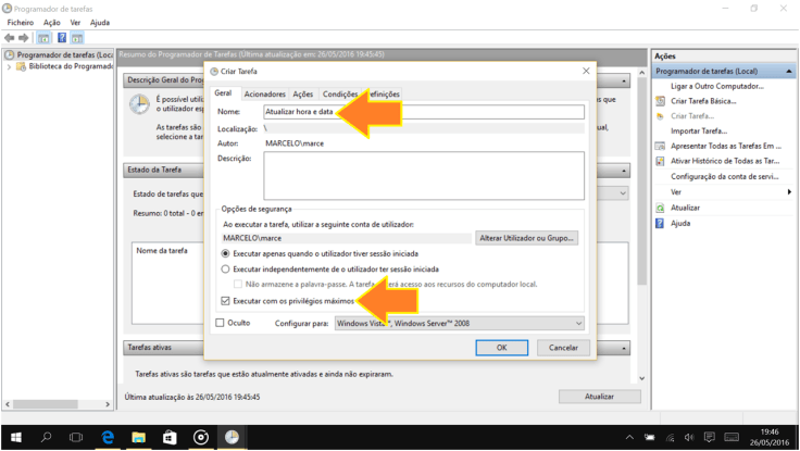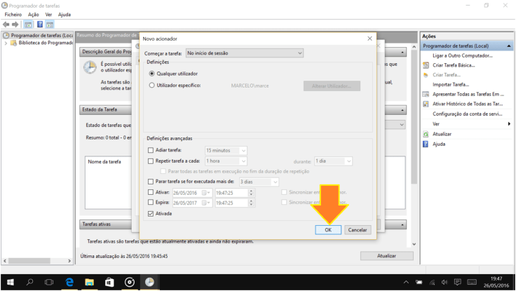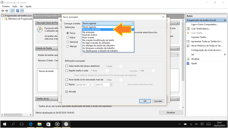 10. Em Começar a tarefa: escolham No início de sessão e cliquem em OK.