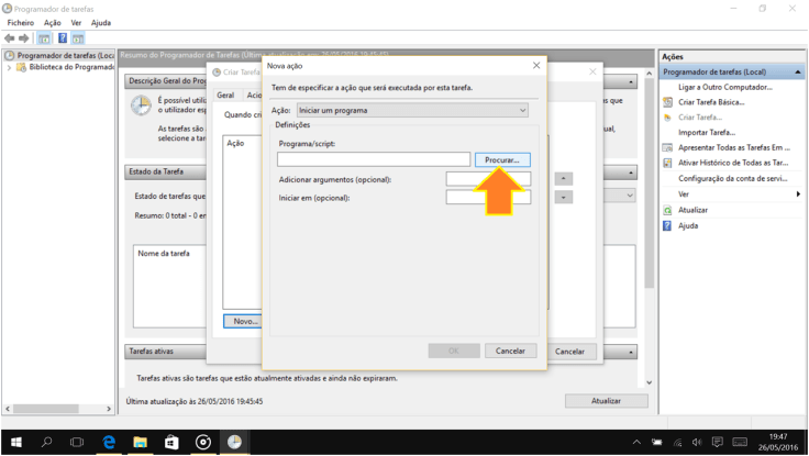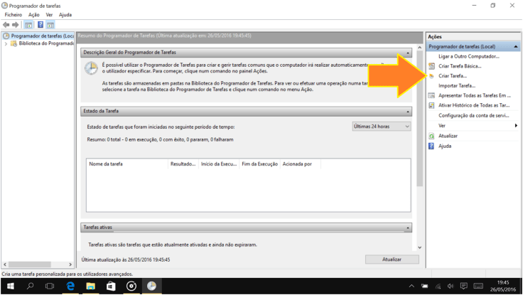 7. Com o programa aberto vamos clicar em Criar Tarefa…