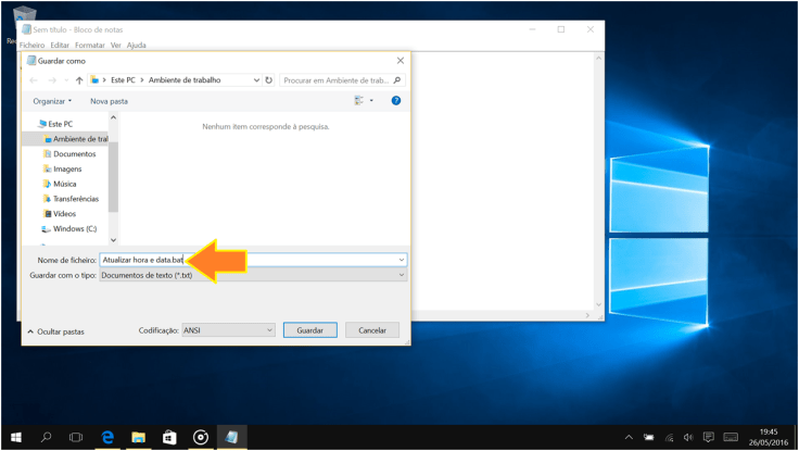 5. Escolham onde querem guardar o ficheiro e deem um nome ao ficheiro mas escrevam .bat no final do nome! Depois vamos clicar em Guardar.