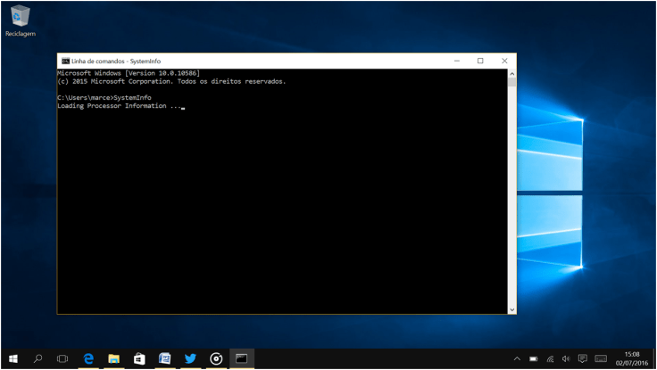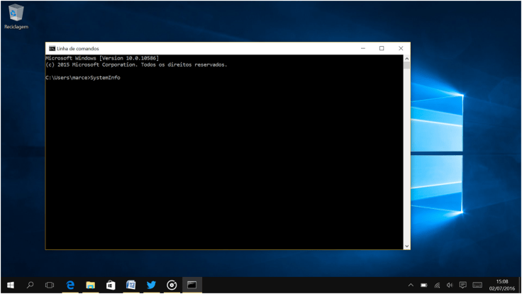 3. Com a Linha de comandos aberta vamos escrever o comando SystemInfo e clicar na tecla Enter.