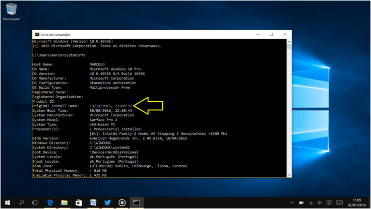 4. Por fim, temos um grande conjunto de informações sobre o Windows. Para verem quando é que o Windows foi instalado, localizem, do lado esquerdo, Original Install Date e à sua frente encontra-se a data e hora da instalação do Windows.