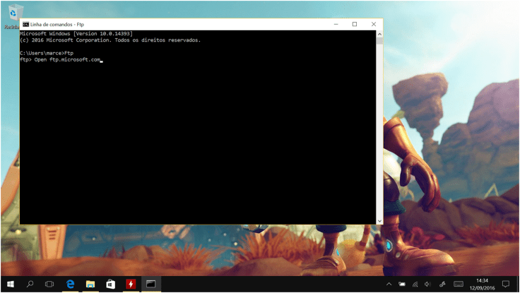 3. Uma vez na linha de comandos, vamos escrever o comando Ftp e clicar na tecla Enter.