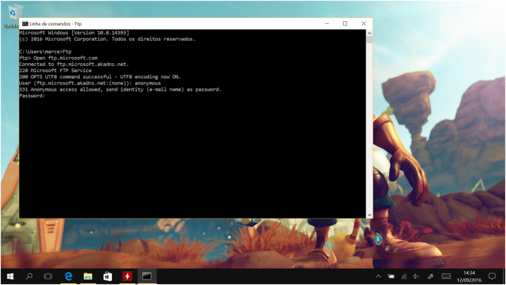5. Neste momento, o servidor está a pedir o nome de utilizador. Vamos dar o nome anonymous e clicar na tecla Enter.