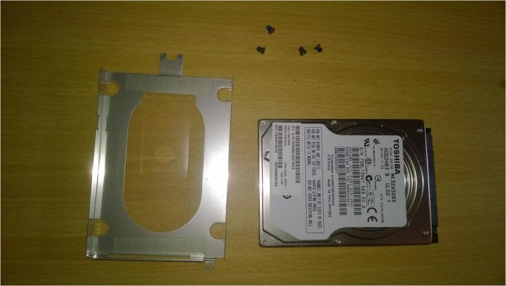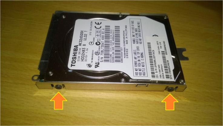 3. De seguida, existem quatro parafusos que mantêm o disco no caddy que têm que ser removidos. Feito isso, o disco está livre.