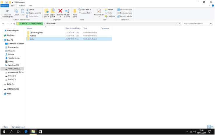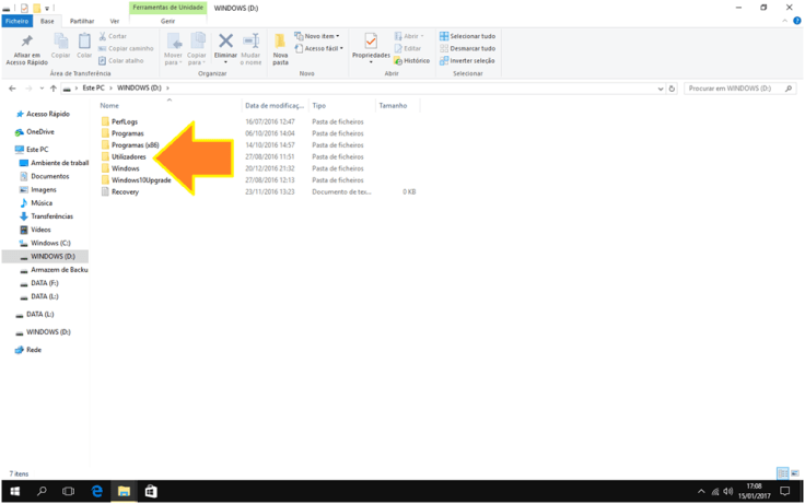 6. Dentro dessa partição, acedam à pasta Utilizadores e, depois, à pasta com o nome de utilizador do qual vão recuperar os dados.