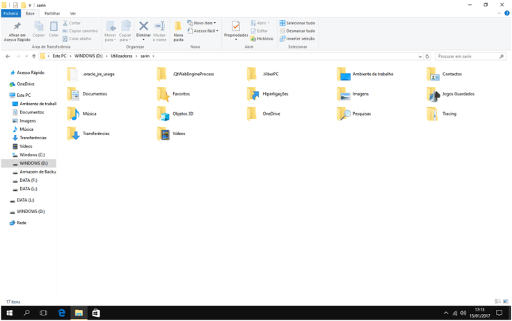 Nota: No Windows 10, caso tenha sido uma conta Microsoft como conta de utilizador, o nome da pasta contém as 5 letras iniciais do email usado.