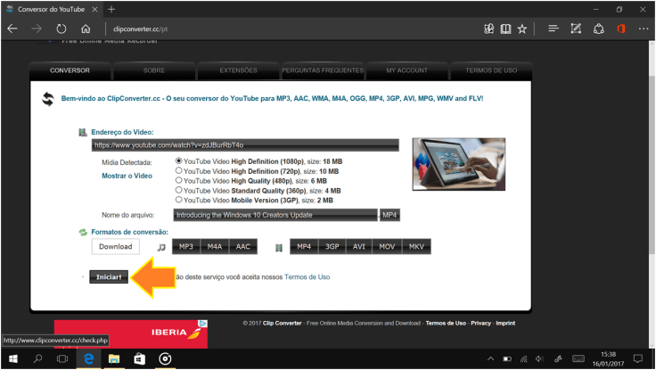 7. Agora basta clicar em Download e, depois, em Iniciar!.