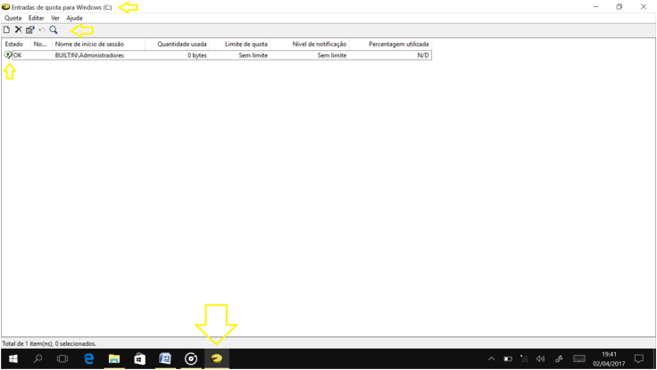 Um dos locais onde podemos ver ícones do Windows 95 é na janela Entradas de quota. Provavelmente, talvez nunca tenham ouvido falar sobre esta funcionalidade, mas, basicamente, a Quota permite limitar o espaço que um utilizador pode usar do disco rígido. Atualmente, não é muito usada, dado que esta funcionalidade foi criada na época em que os discos rígidos tinham pouco espaço de armazenamento.
