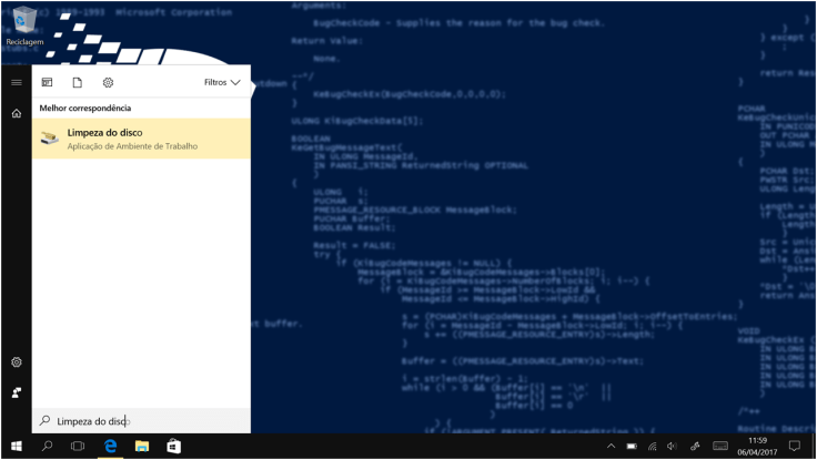 2. Depois, vamos procurar por Limpeza do disco e clicar no primeiro resultado. No caso do Windows Vista e 7, procurem por Limpeza de disco.