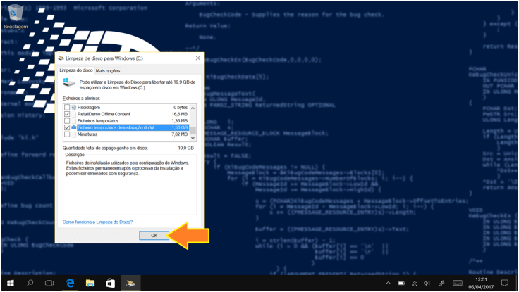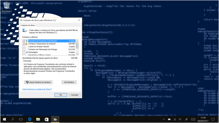 - Ficheiros temporários de instalação do Windows. (caso esteja disponível)