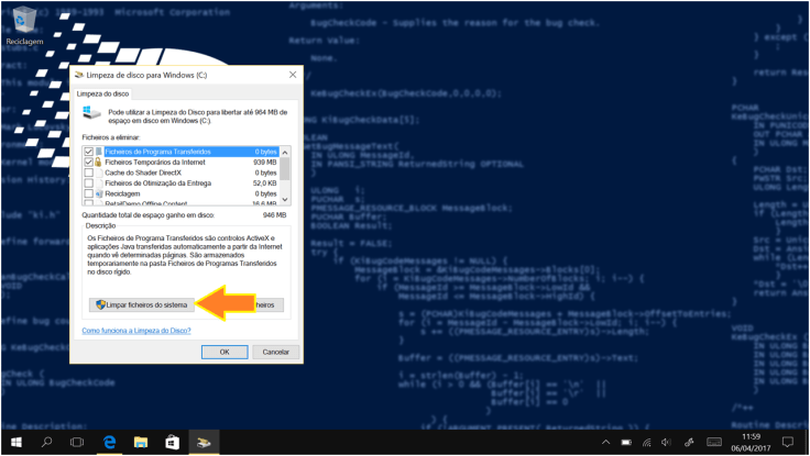 3. Como terceiro passo, vamos clicar em Limpar ficheiros do sistema. O Windows vai verificar que ficheiros do sistema podem ser eliminados em segurança e sem risco de danificar o sistema.