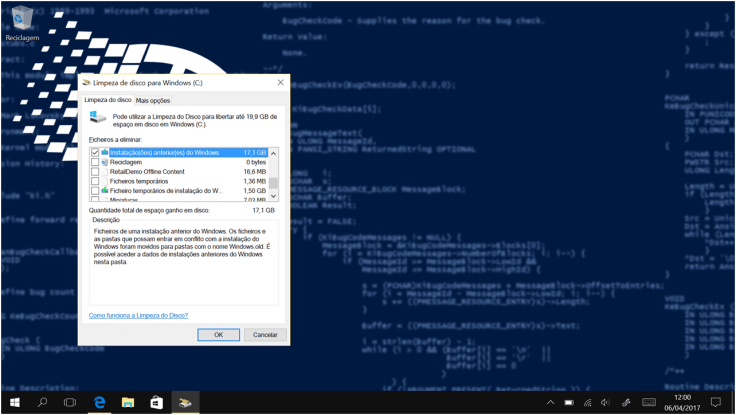- Instalação (ões) anterior (es) do Windows; (que como podem ver, no meu caso, ocupa 17,1 GB!)