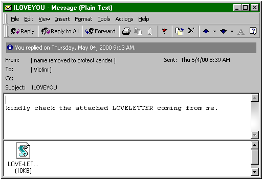 Em maio de 2000, começou a espalhar-se pela Internet um email com o assunto: ILOVEYOU.