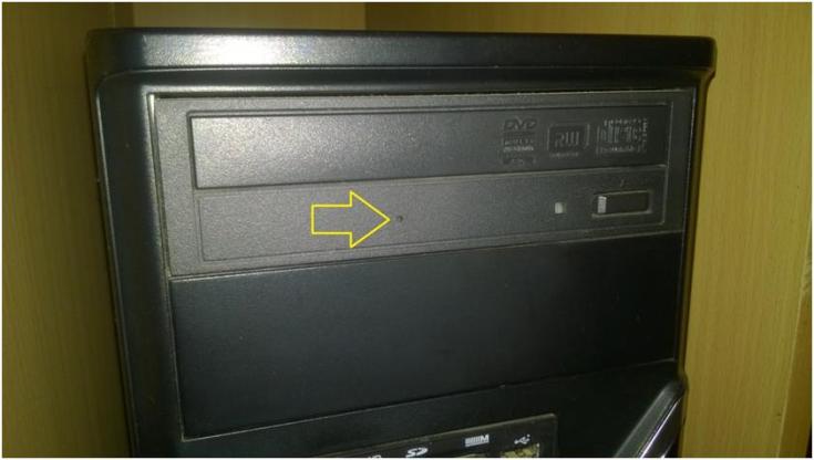 Todas as drives de CD/DVD têm um pequeno orifício que serve para abrir a bandeja sem que seja necessário eletricidade.