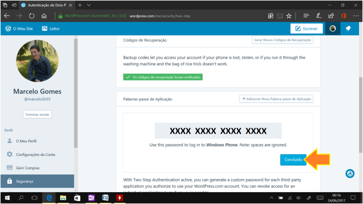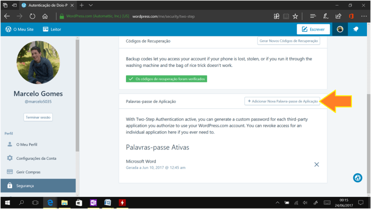 Tutorial – Como criar uma palavra-passe para uma aplicação no WordPress com a Autenticação de Dois-Passos