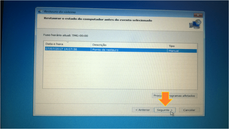 6. Com a janela do Restauro do Sistema, vamos clicar em Seguinte.