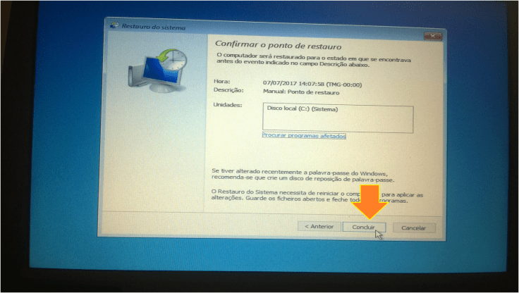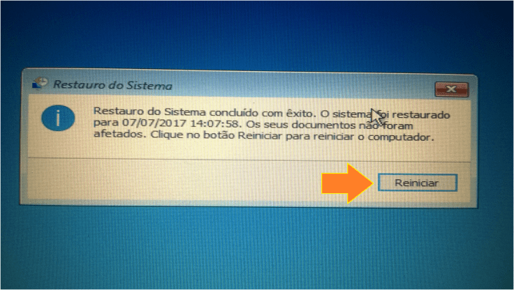 10. No final, o sistema irá informar que o restauro foi concluído com êxito!
