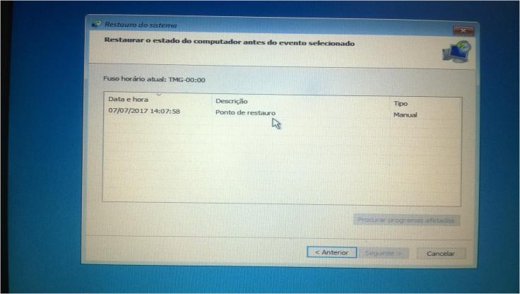 7. O Restauro do Sistema irá mostrar os pontos de restauro que estão disponíveis. Selecionem um em que cuja data e a hora de criação fosse anterior ao computador começar a apresentar problemas e cliquem em Seguinte.