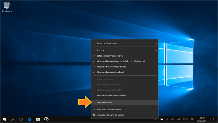 1. O primeiro passo é abrir o Gestor de Tarefas. Para isso, vamos fazer um clique com o botão direito do rato sobre a barra de tarefas e clicar em Gestor de Tarefas.