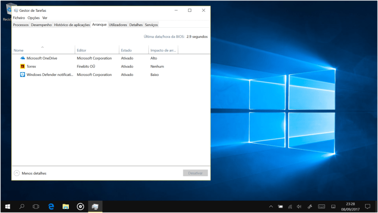 O Windows informa-nos de qual o nome do programa, o editor do programa, o seu estado (se está a arrancar ou não com o Windows) e o seu impacto no arranque. Se um programa tem um alto impacto no arranque significa este vai fazer com que o Windows demore, no mínimo, mais 1 segundo a iniciar ou que o uso do disco do programa é superior a 3 MB no arranque.