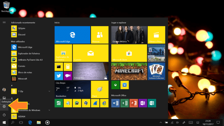 1. O primeiro passo é abrir o menu Iniciar e clicar em Definições.