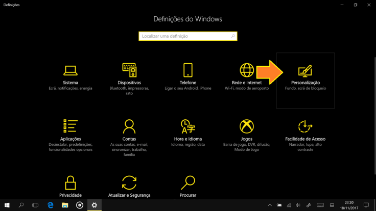 2. Depois, vamos clicar em Personalização.