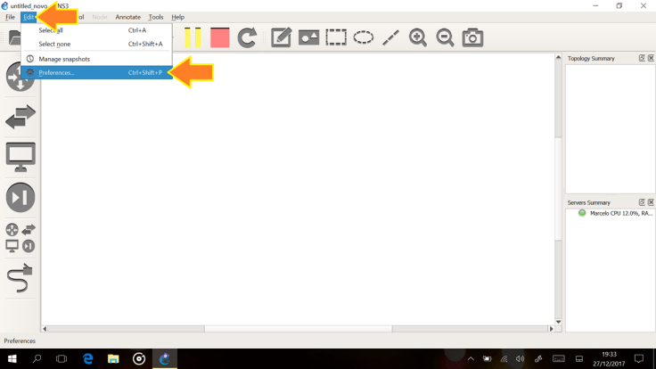 1. O primeiro passo é iniciar o GNS3 e abrir o projeto onde querem inserir a máquina virtual.