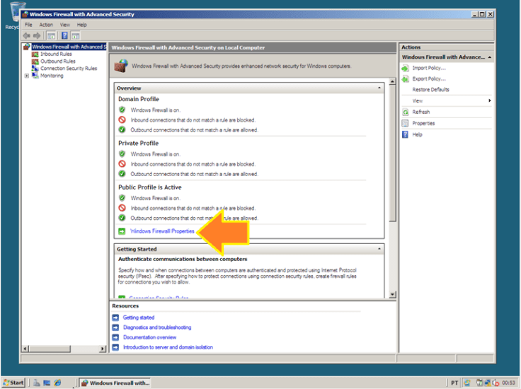 2. Agora, vamos clicar em Windows Firewall Properties.