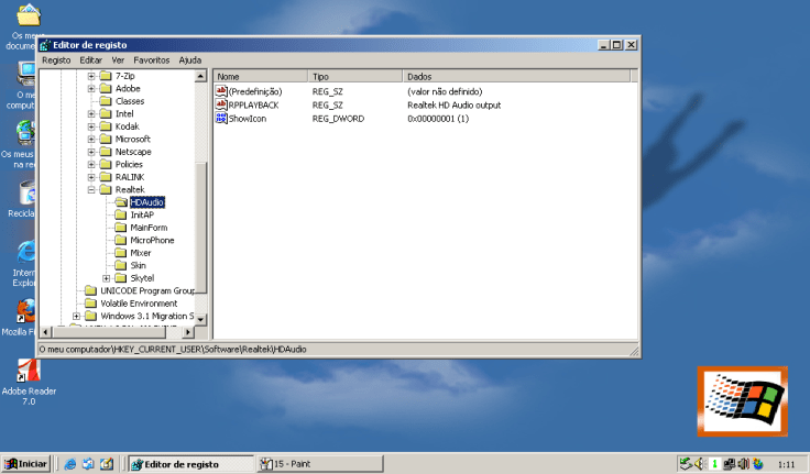 Agora, vamos navegar até HKEY_CURRENT_USER\Software\Realtek\HDAudio.