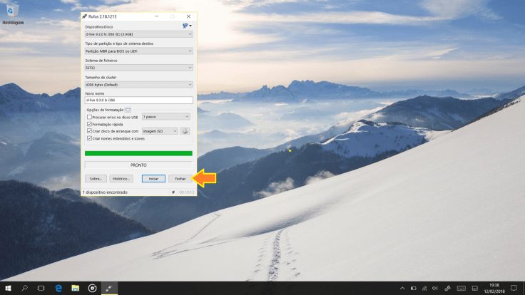 5. No final, cliquem em Fechar e removam a pen com segurança.