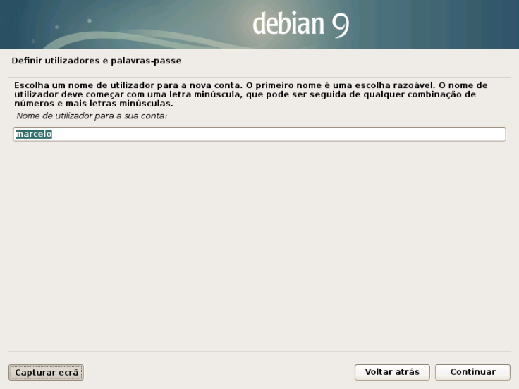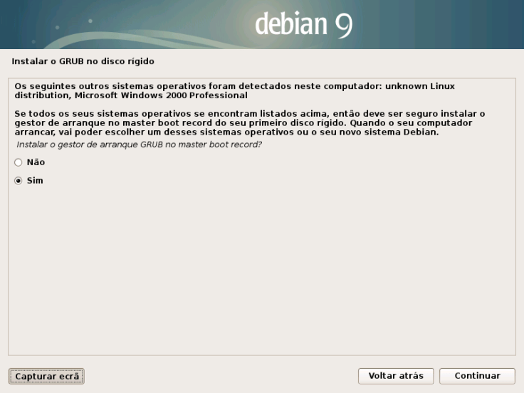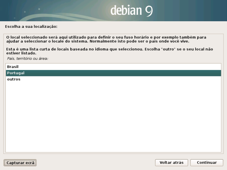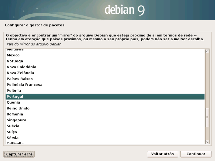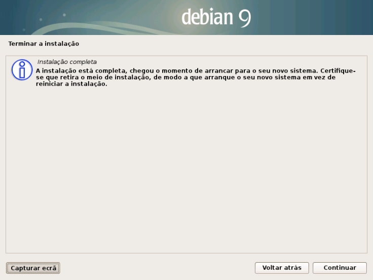 Isto vai iniciar o programa de configuração gráfico do Debian.