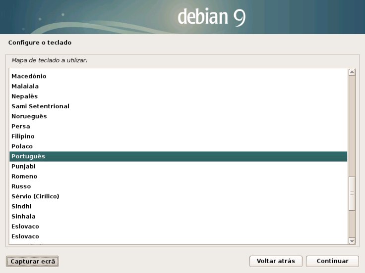 9. Agora, selecionem o layout (esquema) do vosso teclado.