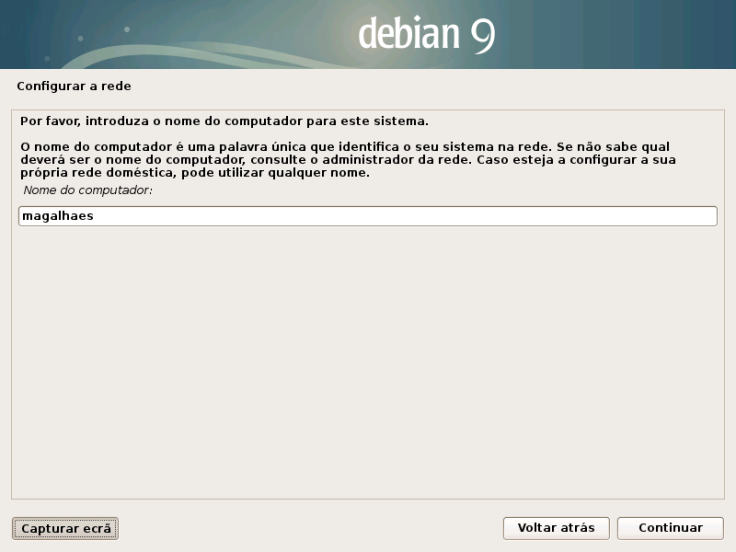 É também possível definir um domínio. Se não o quiserem fazer deixem o espaço em branco e avancem na instalação.