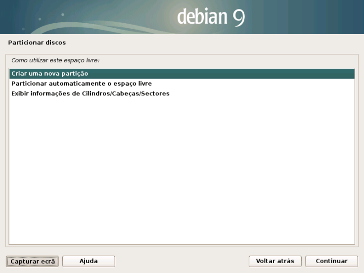 Vamos escolher Criar uma nova partição.