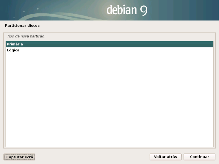 17. Vamos ter que criar duas partições: uma primária para o Debian e uma lógica para o SWAP.