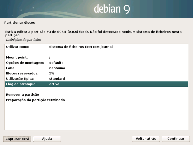 20. Em Flag de arranque escolham activa. Depois cliquem em Preparação da partição terminada.