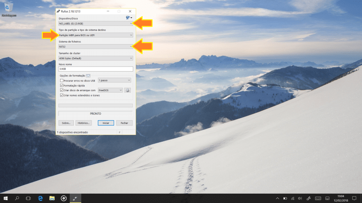 Dispositivo/Disco – vamos indicar a pen que vamos usar;