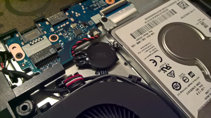 Num portátil, a pilha encontra-se ligada á motherboard através de uma ligação. Assim, é necessário comprar esse conjunto. Podem encontra-lo no Ebay, por exemplo, a preços bastante baixos, procurando por Laptop BIOS battery.