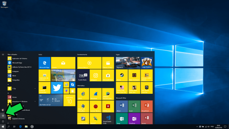 1. Estando o vosso computador ligado a uma rede Wi-Fi, o primeiro passo é aceder ao menu Iniciar e clicar em Definições.