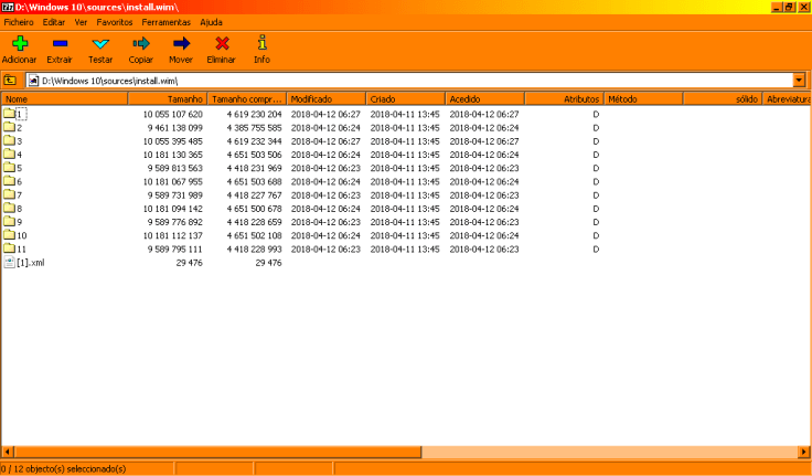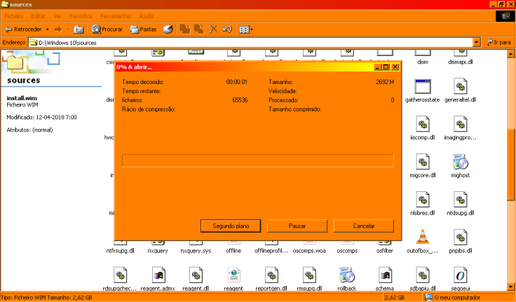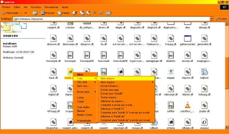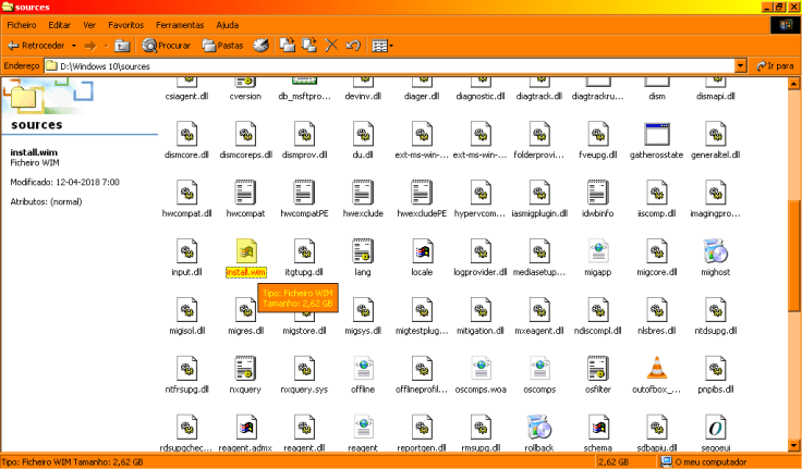 Num ficheiro ISO, o Windows em si está dentro da pasta sources e tem o nome install.wim.