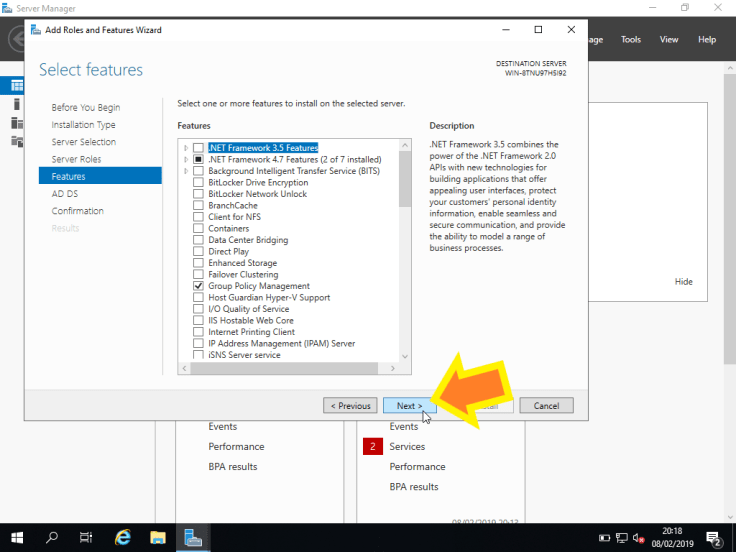 7. Na etapa Select features vamos, simplesmente, clicar em Next >.