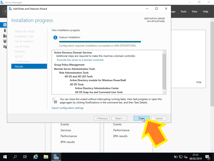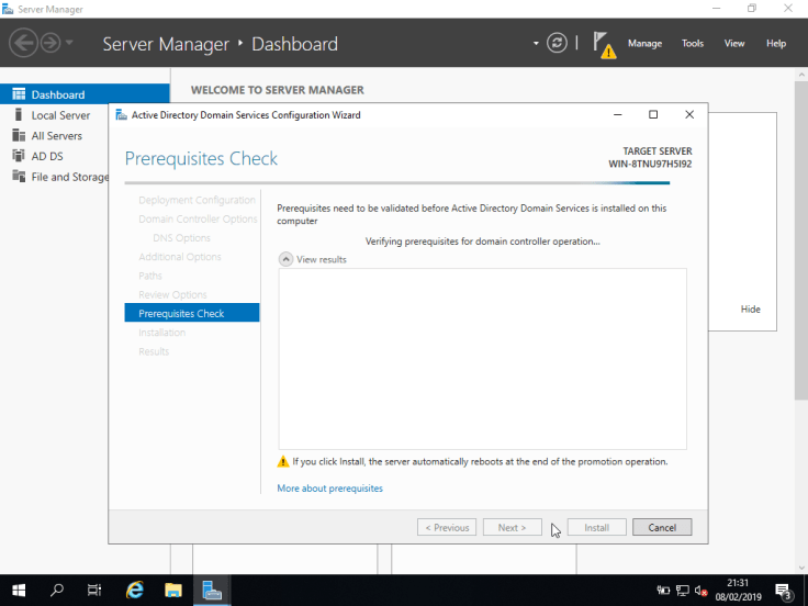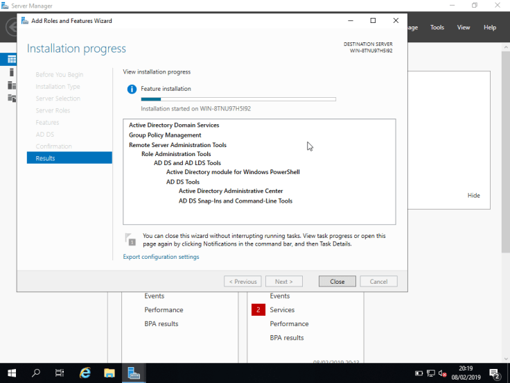 O estado do mesmo pode ser monitorizado no Server Manager: