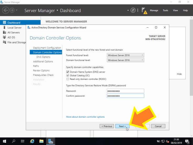 Nota: Neste passo, é possível escolher outras opções interessantes, como o Forest functional level e Domain functional level.